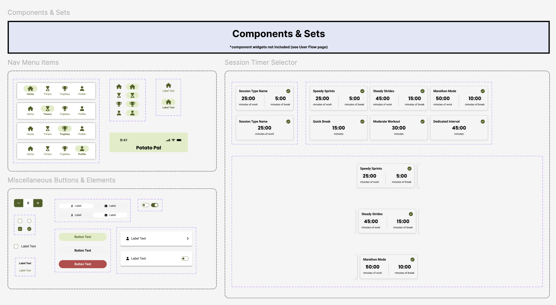 All text styles were tested for legibility and use cases are documented inside the design system. Potato Pal’s typography prioritizes clarity, hierarchy, and approachability to match the app’s goal-oriented tone.